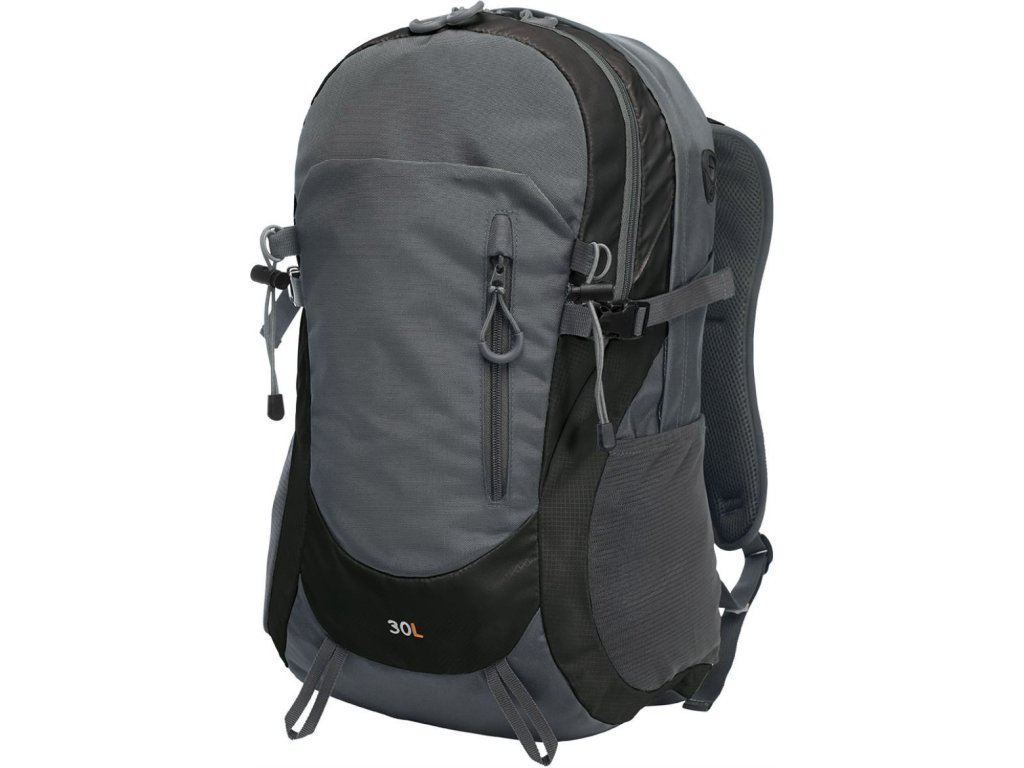 Lehký funkční batoh s polstrovanými zády, polstrovaný bederní pás s kapsami se zipem, polstrované popruhy s horním a dolním nastavením délky, nastavitelný hrudní pás, 2 boční kapsy, oddělená komora na dně s ochranou proti dešti, velká hlavní přihrádka s plochou zasouvací kapsou uvnitř a s výstupem pro sluchátka, boční upínací popruhy, fixace turistických holí, objem 30l, rozměry: 30x49x18cm