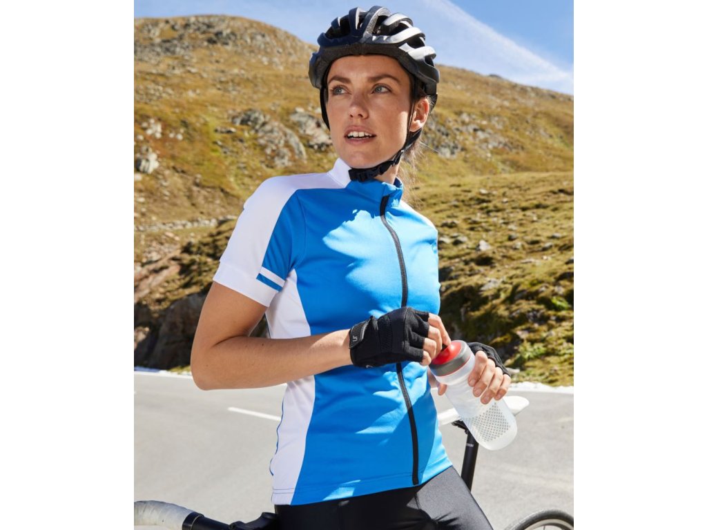 Lehce vypasovaný střih, prodyšný materiál, nastavitelný uzamykatelný krytý zip s ochranou brady, zadní kapsa s uzamykatelným zipem, ergonomicky prodloužená zadní část s protiskluzovou gumou, vsadky v kontrastní barvě, regulující vlhkost, rychleschnoucí, lehké a pohodlné, pratelné na 30°, nelze sušit v sušičce