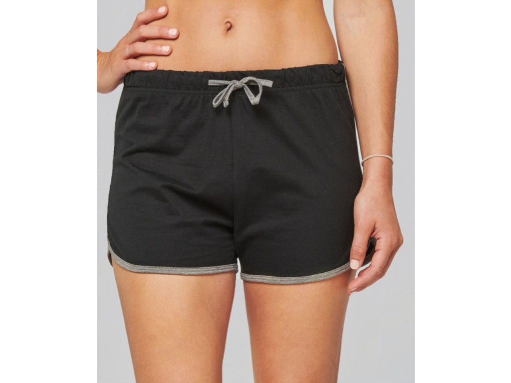 Elastický pas, šikmý proužek a šňůrka v kontrastní barvě, pratelné na 60°, lze sušit v sušičce při nízké teplotě