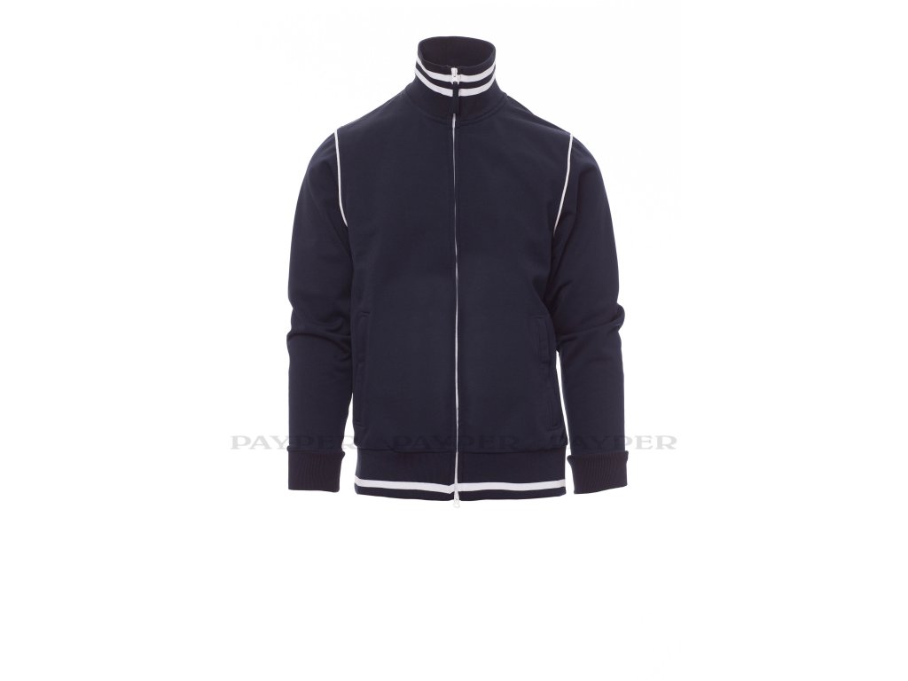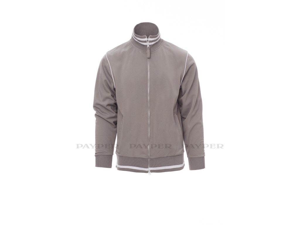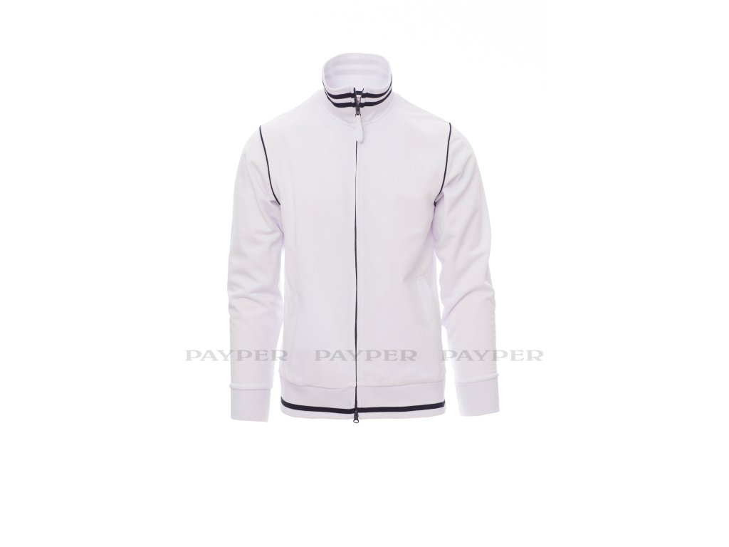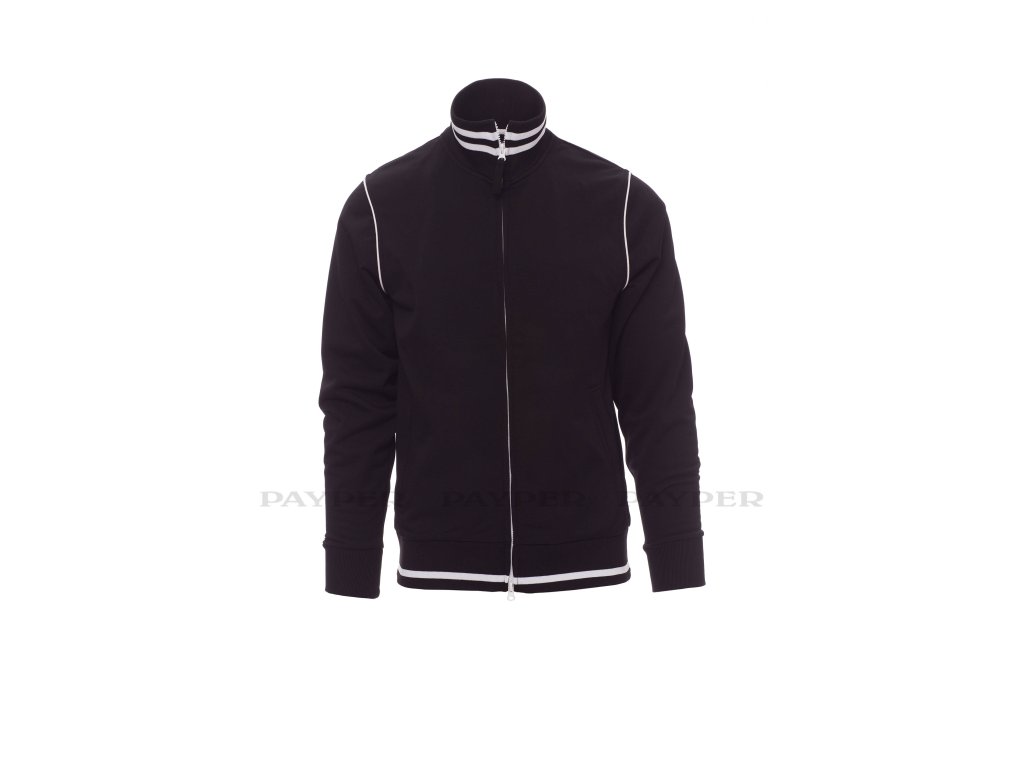 Pánská mikina s kontrastním plastovým skrytým celozipem s dvojitým kovovým jezdcem, žebrovaný krk a pas s kontrastním lemem, manžety a pas s elastickým žebrováním, lemování průramků, dvě postranní kapsy na zip, zesílené švy, simil piké vnější tkanina pro vyšší prodyšnost.