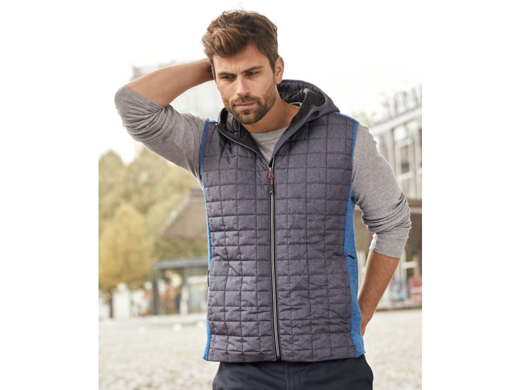 Kapuce s nastavením šířky, plný podšitý zip, 2 boční kapsy se zipem, 2 vnitřní kapsy, přední část, zadní část a kapuce v prošívaném károvaném designu, melanžový vzhled, pratelné na 30°, šetrné praní, nelze žehlit, nelze sušit v sušičce