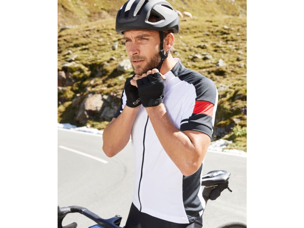 Prodyšný materiál, nastavitelný uzamykatelný krytý zip s ochranou brady, zadní kapsa s uzamykatelným zipem, ergonomicky prodloužená zadní část s protiskluzovou gumou, vsadky v kontrastní barvě, regulující vlhkost, rychleschnoucí, lehké a pohodlné, pratelné na 30°, nelze sušit v sušičce